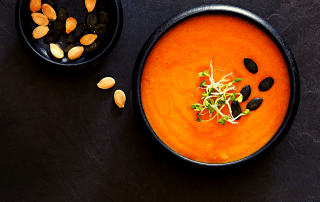 Hier findest du das Rezept für unsere Kürbissuppe aus dem Kochkurs "Heimatliebe" Kürbissuppe Zutaten: 1 Hokkaido Kürbis 2 Karotten 2-3 Zwiebeln 1 Stange Lauch 2 Zehen Knoblauch 200 ml Weißwein ÖL Salz Pfeffer Zucker Muskat Zimt 5oo ml Wasser 500g Sahne 2 Orangen, Saft und Abrieb Zum Garnieren: Kürbiskerne Kürbiskernöl Zubereitung: Zwiebeln, Karotten und Knoblauch schälen und in etwa Walnuss große Stücke schneiden.